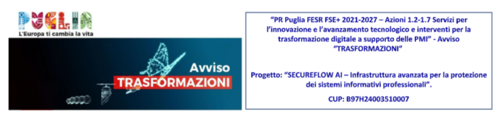 Studio Birardi Commercialisti e Consulenti del Lavoro STP compie un nuovo passo nel proprio percorso di crescita e innovazione, completando con successo il progetto “Infrastruttura avanzata per la protezione dei sistemi informativi professionali – SECUREFLOW AI”, finanziato nell’ambito del PR Puglia FESR 2021–2027 – Avviso Trasformazioni.